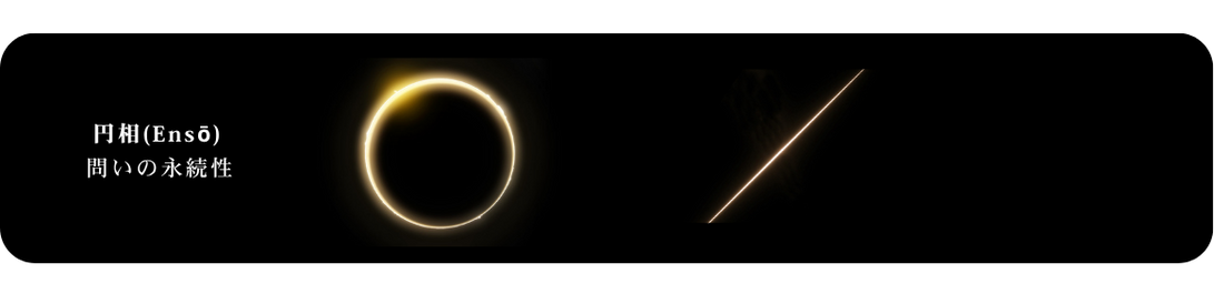 円相は、問いを更新し続ける未完性、一閃は、構造を切り開く突破力。蒔絵金・漆黒・真朱は、価値・構造・決意の三位一体、白銀比は、調和と普遍性の基準。